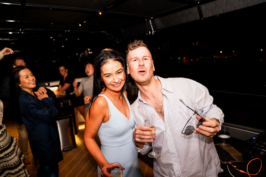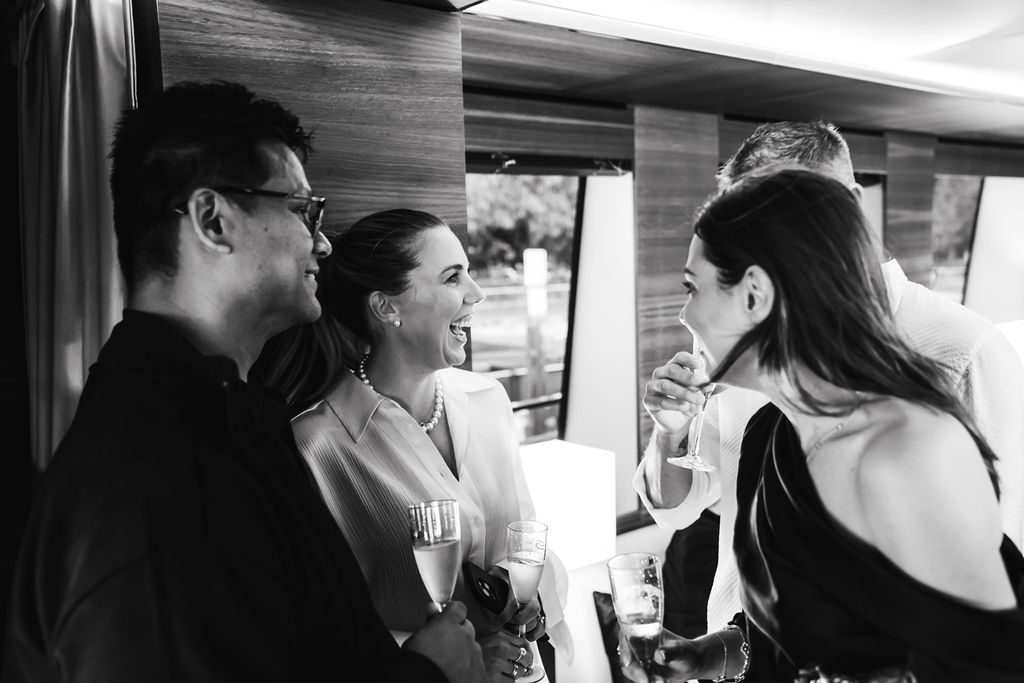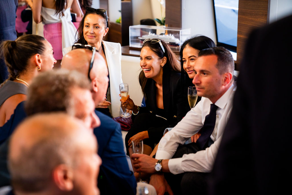 Guests were welcomed on board with flutes of Pommery Champagne, setting a celebratory tone as the yacht cruised gracefully across the harbour. Endless trays of delicious canapés were served throughout the evening, each one thoughtfully crafted to complement the champagne and enhance the relaxed yet glamorous ambience.
