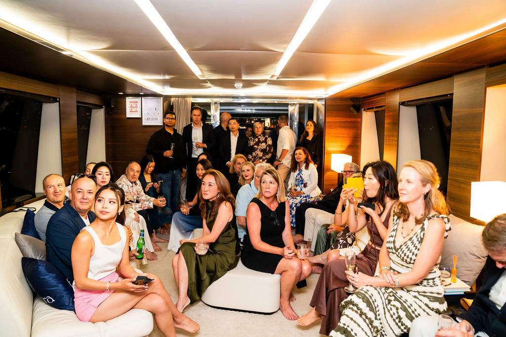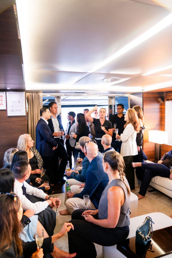 The DJ kept the atmosphere alive with an effortlessly upbeat soundtrack, creating the ideal setting for members to mingle, connect, and enjoy the spectacular views of Sydney’s iconic skyline. As the golden hour settled over the water, the superyacht became a floating sanctuary of style, conversation, and world-class hospitality.